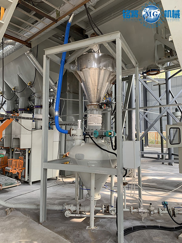 MGPG系列氣力輸送系統,是我公司吸收國外先進設計理念,大膽創新反復試驗,成功研制的一種新型氣動式粉體(顆粒)輸送系統。該系統摒棄傳統輸送模式,以空氣能為動力介質,依據不同材料物料特性,配備特制供料裝置,輔以各種精密閥門及專用管道,精密設計而成。根據生產需要,該系統可采用密相間歌式批量輸送或稀相連續式輸送等兩種不同的送料形式。該系統可用于可再分散乳膠粉、纖維素、各種功能性添加劑、鈣粉、玻化微珠、細砂等粉體或細顆粒的輸送。